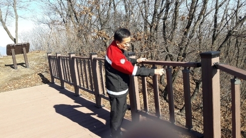 이번 점검은 양자산 등산로 노면상태, 안내판 및 이정표 훼손여부, 데크전망대 등 시설물 주변 침식여부, 로프상태 등을 살폈다.