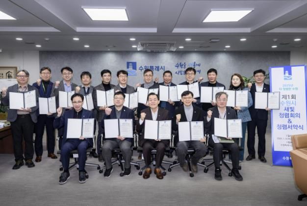 이재준 시장과 김현수 제1부시장, 현근택 제2부시장, 각 실·국장은 9일 시장 집무실에서 ‘제1회 수원시 새빛 청렴회의’를 열고, ‘청렴행정 실천’을 서약했다.
