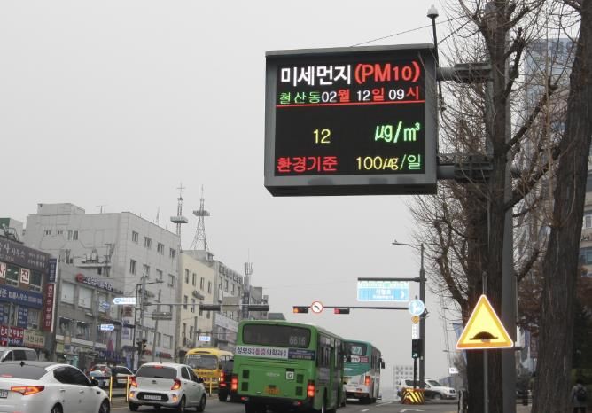 또한 광명시민운동장, 광명시민체육관, 광명시보건소 앞, 한내근린공원, 새빛공원, 광명동굴, 안양천 등 9개소에 미세먼지 신호등을 설치해 시민들에게 관련 정보를 실시간으로 제공하고 있다.