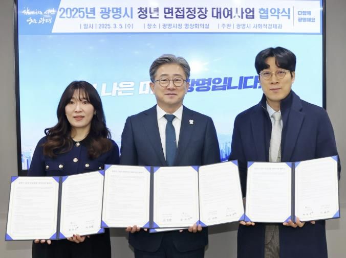 한편 광명시는 지난 5일 청년 면접정장 무료 대여사업의 원활한 운영을 위해 정장 업체 데시데리오 테일러(대표 안은영), ㈜마이스윗인터뷰(대표 김태문)와 업무협약을 체결했다.