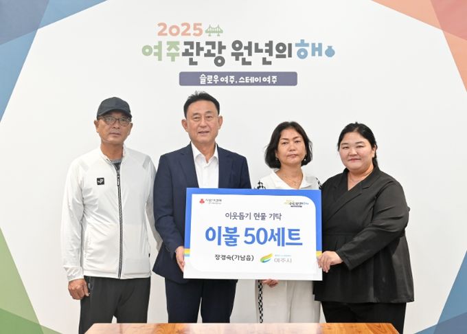 (비전21뉴스) 지난 19일 장경숙(가남읍 주민)님은 여주시청을 방문하여 여주시 저소득층을 돕기 위한 후원품으로 이불 50세트(175만원 상당)를 기탁했다.