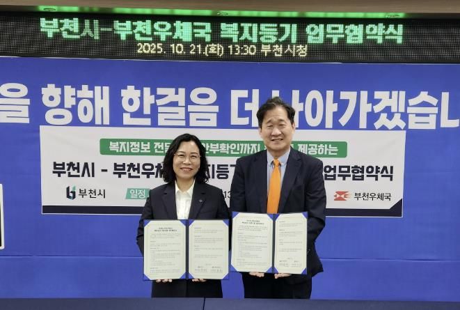 (비전21뉴스) 부천시는 지난 21일 부천우체국과 ‘복지등기 서비스 지원’을 위한 업무협약을 맺고, 우편배송망을 활용해 복지사각지대를 발굴하고 위기가구를 지원하는 공공협력 체계를 본격적으로 가동한다.