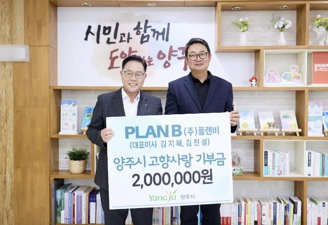 김진성 ㈜플랜비 대표이사는 “관내 기업으로서 양주시의 고향사랑기부제에 동참하게 되어 뜻깊다”며 “이번 기부가 지역사회 발전에 작은 보탬이 되길 바란다”고 전했다.