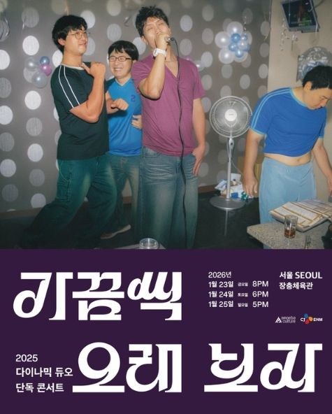 2025 다이나믹 듀오 단독 콘서트 '가끔씩 오래 보자'는 오는 12월 20, 21일 부산 벡스코 오디토리움, 24일 대구 엑스코 동관 4홀, 27일 광주 김대중컨벤션센터 다목적홀, 내년 1월 23, 24, 25일 서울 장충체육관에서 개최된다.