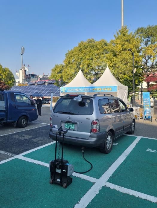 매연농도를 측정해 저감 장치의 성능을 확인하고, 자기진단장치(OBD) 정상 가동 여부와 배기 온도·압력 기록 상태 등을 점검했다. 또 부착 차량의 의무 사항을 안내하고 필터 클리닝 서비스를 제공했다.