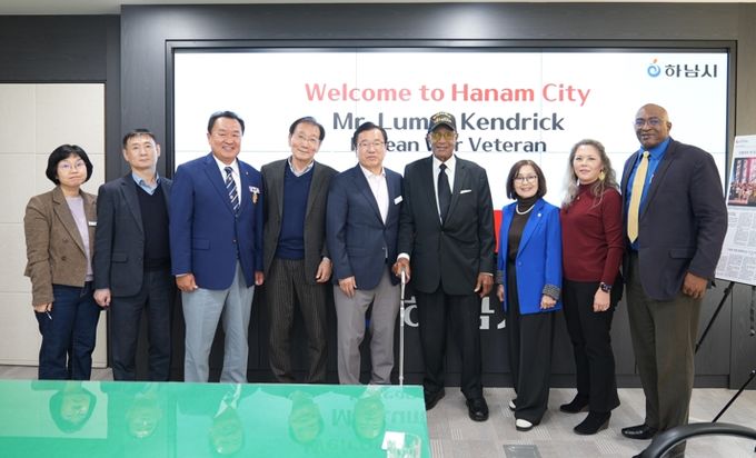 (비전21뉴스) 하남시는 11월 7일, 美 아칸소주 출신의 6·25 참전용사 루마스 켄드릭(Lumas Kendrick) 씨가 국가보훈부 초청으로 한국을 방문함에 따라 하남시청을 찾았다고 밝혔다. 이번 방문에는 켄드릭 씨의 자녀 루마스 켄드릭 주니어(Lumas Kendrick Jr.), 전 아칸소 한인회장 정 나오미 씨와 하남시 재향군인회 임문택 회장이 함께했다.