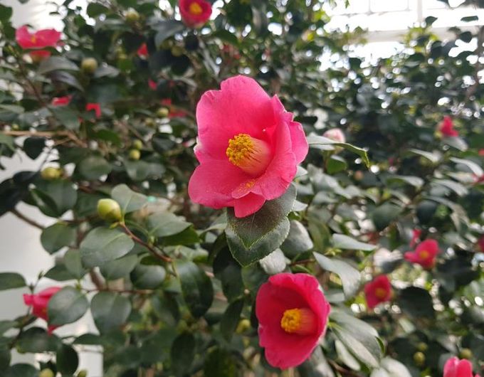 볼만한 난대식물은 먼저 겨울철~이른 봄 개화하는 애기동백나무, 삼지닥나무,제주백서향 등이 있다. 초겨울에 개화하는 애기동백나무는 우리나라 남부지방에서 주로 관상용으로 심는 차나무과 식물로 키는 5~10m 정도이며, 겨울철 붉은색의 꽃을 볼 수 있다. 삼지닥나무의 경우 팥꽃나무과 낙엽활엽관목으로 키는 1~2m이며, 이른 봄에 꽃을 피우지만, 온실에서는 한겨울에 개화를 시작한다. 과거에는 제지용으로 쓰였으나 현재는 남부지방에서 관상용으로 심는다. 제주백서향은 전 세계를 통틀어 제주 지역에서만 자생하는 팥꽃나무과에 속하는 식물이다. 높이는 1m 정도 자라며 꽃은 흰색이고 좋은 향기가 난다.