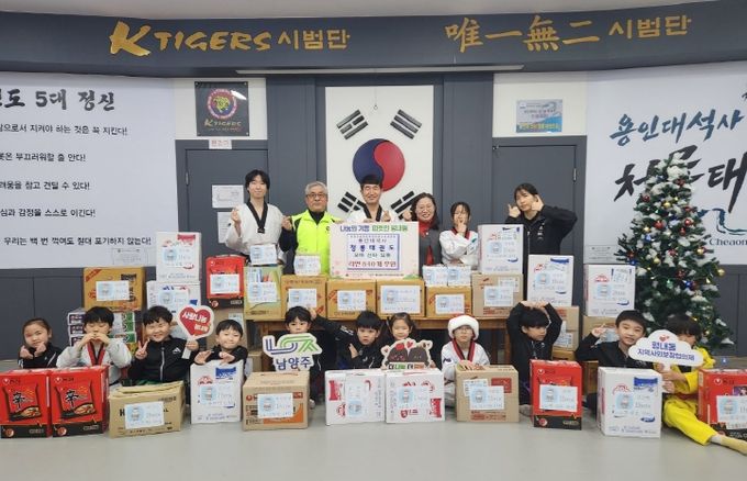 (비전21뉴스) 남양주시는 지난 24일 크리스마스를 맞아 평내동에 위치한 용인대석사 청룡태권도(관장 박환균) 원생들이 ‘꼬마 산타’로 등장해 소중한 마음이 담긴 라면 840개를 기부했다고 밝혔다.
