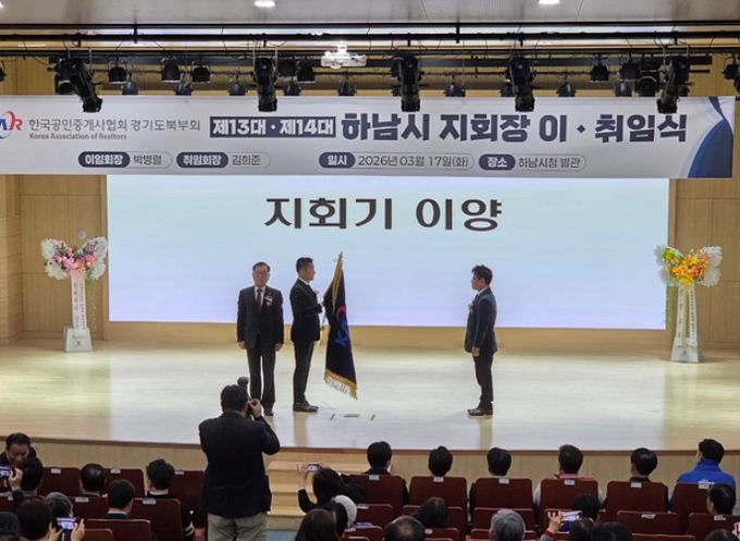 한국공인중개사협회 경기도북부회 하남시지회는 3월 17일 하남시청 별관 대강당에서 제13·14대 지회장 이·취임식을 하고 본격적인 활동에 들어갔다.