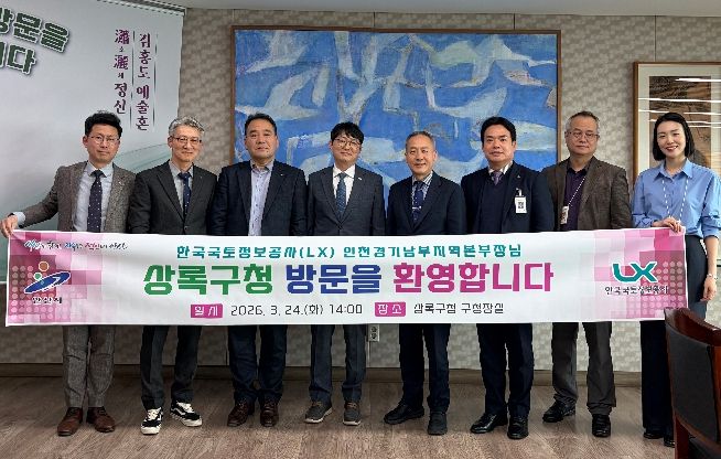 (비전21뉴스) 안산시는 지난 24일 지적 행정 업무 협력 강화를 위해 한국국토정보공사(LX) 인천경기남부지역본부와 ‘지적 업무 간담회’를 개최했다고 25일 밝혔다.