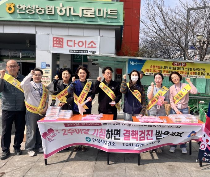 (비전21뉴스) 안성시보건소는 ‘제16회 결핵 예방의 날(3월 24일)’을 맞아 지난 3월 25일 관내 유동 인구가 많은 안성농협 하나로마트 정문 및 안성시장 인근에서 ‘결핵 예방 캠페인’을 실시했다고 밝혔다.