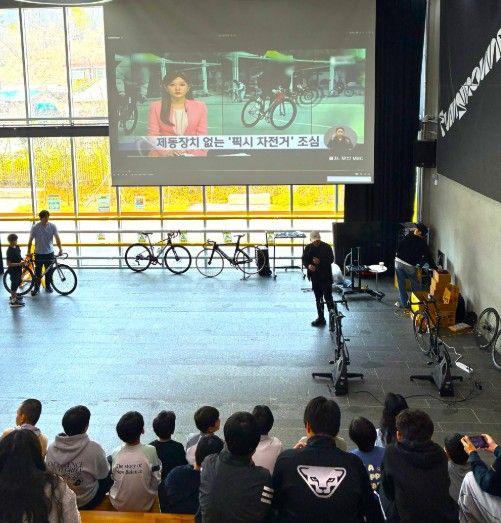 이날 교육에서는 픽시자전거의 구조적 특성과 위험성을 설명했다. 특히 기어가 고정돼 페달이 지속 회전하는 구조와 제동의 어려움을 중심으로 위험성을 설명했다. 브레이크가 없는 픽시자전거가 도로교통법상 불법에 해당한다는 점도 함께 전달했다.
