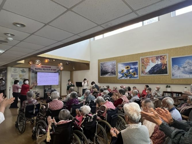 (비전21뉴스) 용인특례시는 평생학습관 재능나누미 교육 수강생들이 16일 처인구 역북동에 있는 대한간호노인요양원을 찾아 노인들을 대상으로 인지기능 향상을 위한 프로그램을 진행했다고 17일 밝혔다.