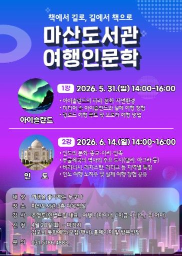 강의는 여행사 대표이자 '지금 아니면'의 저자인 주영두 강사가 진행한다. 실제 여행 경험을 바탕으로 아이슬란드와 인도의 자연환경, 역사, 문화를 쉽고 흥미롭게 전달할 예정이다.