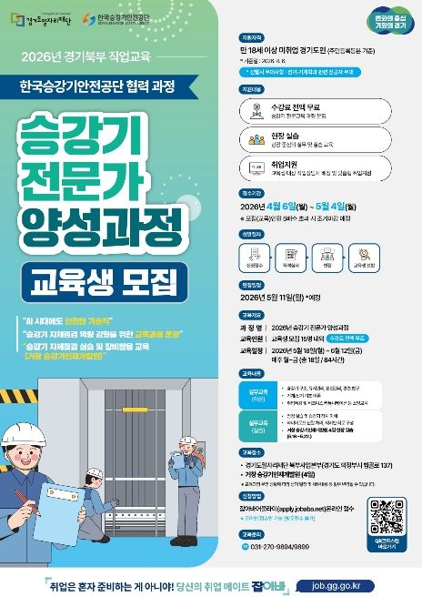 (비전21뉴스) 경기도일자리재단은 승강기 전문 인력 양성을 통해 일자리 문제 해결과 지역경제 활성화를 추진하고자 ‘2026년 승강기 전문가 양성 과정’ 교육생을 모집한다고 21일 밝혔다.