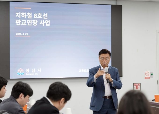 신상진 성남시장은 이날 한국개발연구원(KDI) 연구진과 시청에서 만나 지하철 8호선 판교연장사업은 국가역점사업으로 추진 중인 반도체 벨트(서울~성남~용인~화성) 등의 광역 연계 교통망을 구축하기 위해 꼭 필요한 사업이라고 강조했다.