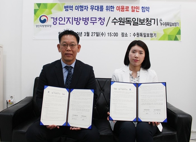 경인지방병무청(청장 김용무)은 27일 수원시 장안구에 소재하고있는 수원독일보청기(원장 임수연)와 병역명문가(직계가족 포함) 및 현역병,사회복무요원 등 병역이행자 우대를 위한 보청기 구매 비용 할인 우대 협약식을 가졌다.
