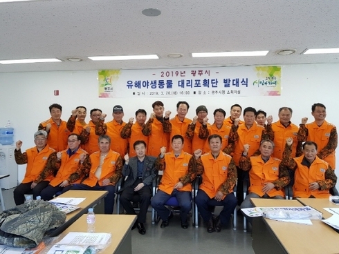 [비전21뉴스] 광주시는 지난 26일 관내 모범 수렵인 23명이 참석한 가운데 ‘2019 유해 야생동물 대리포획단 발대식’을 개최했다.