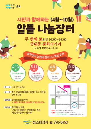 [비전21뉴스] 군포시가 오는 4월 13일 궁내동 문화의 거리에서 ‘시민과 함께하는 알뜰 나눔장터’를 개최한다.
