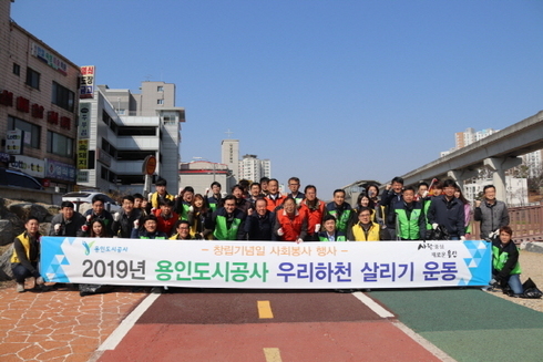 이들은 김량장동 본사에서 출발해 명지대역부터 송담대역까지 왕복하며 하천 주변에 버려진 불법 쓰레기를 1톤 가량 수거했다.