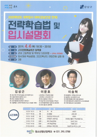 [비전21뉴스] 군포시가 오는 4일 오후 6시 30분부터 지역 내 대학입시 수험생들을 위해 강남구청과 연계, ‘2020학년도 대학입시 대비 전략 학습법 및 입시 설명회’를 개최한다.