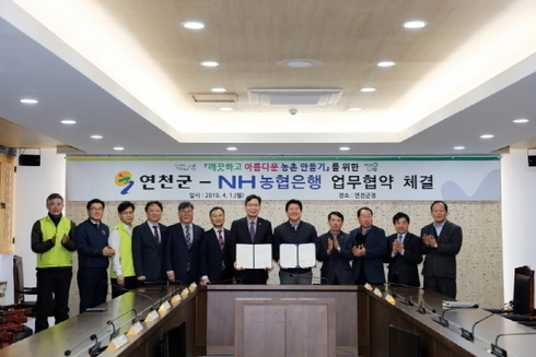 [비전21뉴스] 연천군은 1일 오전 군청 상황실에서 연천군과 농협은행 연천군지부 간 깨끗하고 아름다운 농촌마을 가꾸기 업무협약을 체결하고 미산면 우정리에서 영농폐비닐 수거 봉사활동을 공동으로 실시했다.