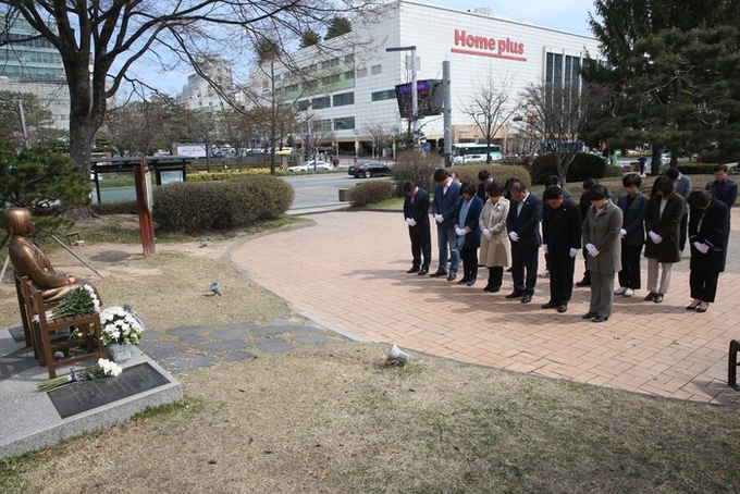 수원시의회(의장 조명자)는 1일 수원 올림픽공원 내 평화의 소녀상에서 위안부 피해자 고(故) 용담 안점순 할머니를 추모했다.