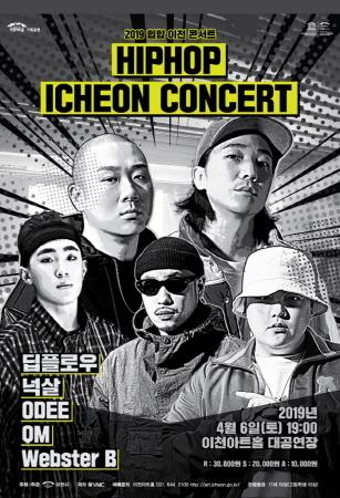 [비전21뉴스] 이천아트홀이 이천의 봄을 들썩이게 만들어줄 딥플로우, 넉살, 이로한 등이 출연하는 ‘힙합 이천' 콘서트를 오는 6일 오후 7시 이천아트홀 대공연장을 통해 선보인다.
