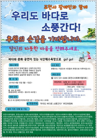 지난 3월 포천시 새마을회, 자원봉사센터, 시설장애인협회, 장애인자립생활센터, 사회복지협의회 등 50여개 기관·단체가 뜻을 모아 ‘우리도 바다로 소풍간다’ 추진위원회를 결성했다.