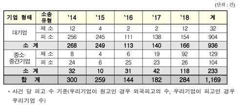기술 분야별로는 최근 5년 전기전자·정보통신 분야에 우리기업 소송의 74%가 집중됐다.