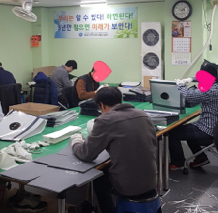 현재 두 곳 자활시설에 입소한 42명 중에서 27명이 리스타트 작업장에서 쇼핑백을 만들어 시중에 유통하는 일을 해 월 120만~150만원을 벌고 있다.