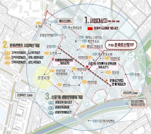 신장동은 이마트 등 대규모 점포가 신도시를 중심으로 들어서면서 기존 전통시장 상권이 위축돼왔고, 그간 추진해온 재개발이 무산되면서 지역이 낙후되어 도시재생 1순위 대상지로 문화적 도시재생의 활력이 필요한 곳이다.