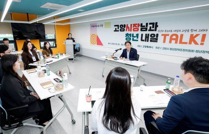 지난 20일 내일꿈제작소에서 열린 ‘고양시장과 청년 내일 TALK’에서 청년들의 질문에 시장이 답을 하고, 청년들의 제안에 귀 기울이며 고양의 미래를 함께 고민했다.