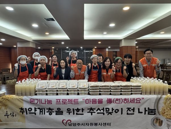 (비전21뉴스) 남양주시자원봉사센터는 추석맞이 집중 주간을 맞이하여 9월 25일부터 오는 10월 3일까지 약 1,300명의 관내 취약계층을 대상으로 ‘추석맞이 전 나눔 활동’을 펼쳤다.