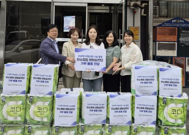 푸른과천환경센터 탄소중립 생활실천단은 지역 내에서 수거한 우유갑을 재활용해 화장지로 교환하는 자원 순환 활동을 펼치고 있으며, 이번 기부를 통해 총 24롤 45묶음의 화장지를 별양동주민센터에 전달했다.