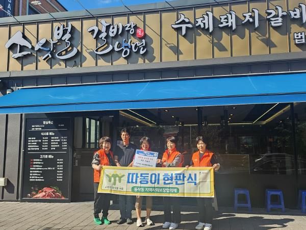 (비전21뉴스) 평택시 동삭동 지역사회보장협의체는 지난 15일 관내 취약계층 10가구에 월 2회 정기적으로 5가지 밑반찬을 지원할 예정인 소삿벌 법원직영점에 ‘따동이’ 5호점 현판을 전달했다.