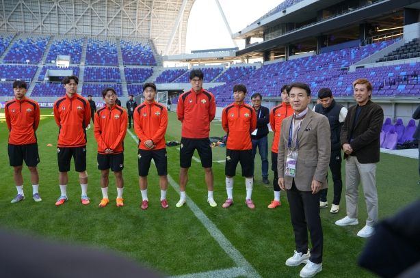 (비전21뉴스) 김진태 강원특별자치도지사(구단주)는 11월 3일 오후 3시, 일본 히로시마 에디온 피스 윙 스타디움을 방문해 아시아챔피언스리그 조별리그 원정경기를 앞두고 훈련 중인 강원FC 선수단을 격려하고 응원의 메시지를 전했다.