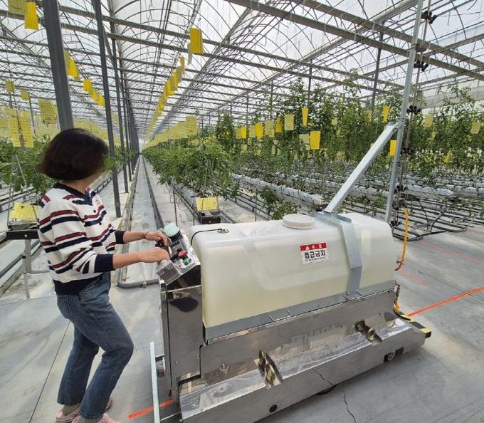 (비전21뉴스) 평택시는 농업 현장에서 반복적이고 인체에 유해할 수 있는 방제 작업의 위험을 줄이기 위해 ‘중소형 스마트팜 방제 로봇 시범사업’을 고덕면 시설토마토 농가(규모 0.4㏊)를 대상으로 추진했다.