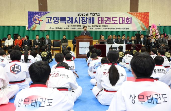 (비전21뉴스) 2025년 제27회 고양특례시장기 태권도대회가 16일 고양어울림누리 체육관에서 개최됐다. 이동환 고양특례시장은 “갈고닦은 실력과 기량을 유감없이 발휘해 후회 없는 경기를 펼쳐주길”이라고 말했다.