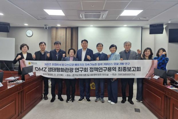 (비전21뉴스) 경기도의회 의원연구단체인 DMZ생태평화관광 연구회(회장 오준환 의원)는 지난 27일 경기도의회 도시환경위원회 회의실에서 '커먼즈 관점에서 본 DMZ와 배후지의 지속가능한 협력 거버넌스 모델 개발 연구' 용역 최종보고회를 개최했다.