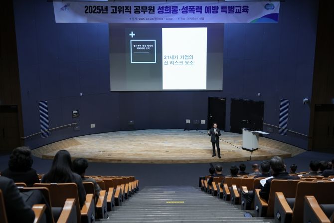 (비전21뉴스) 경기도는 22일 경기도청 다산홀에서 김동연 경기도지사를 포함해 고위직 공무원 약 50명을 대상으로 ‘직장 내 성희롱·폭력 예방 특별교육’을 실시했다.