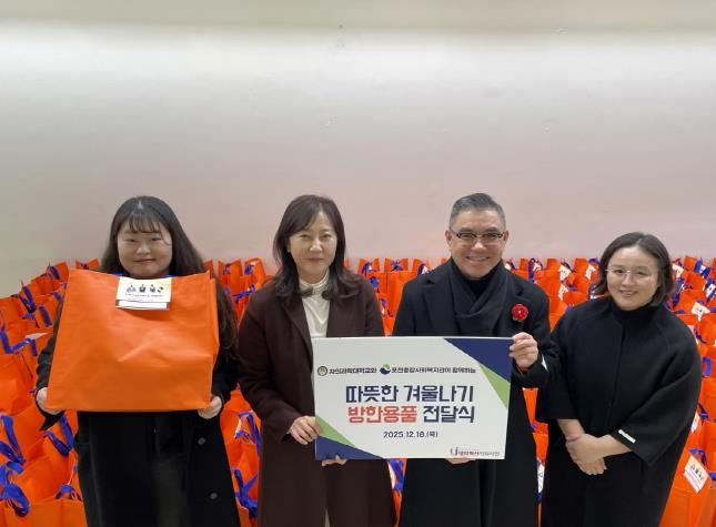 (비전21뉴스) 포천시종합사회복지관과 차의과학대학교는 지난 18일 차의과학대학교 사회봉사센터에서 따뜻한 겨울나기를 위한 ‘2025년 사랑의 방한용품 나눔’ 전달식을 진행했다.