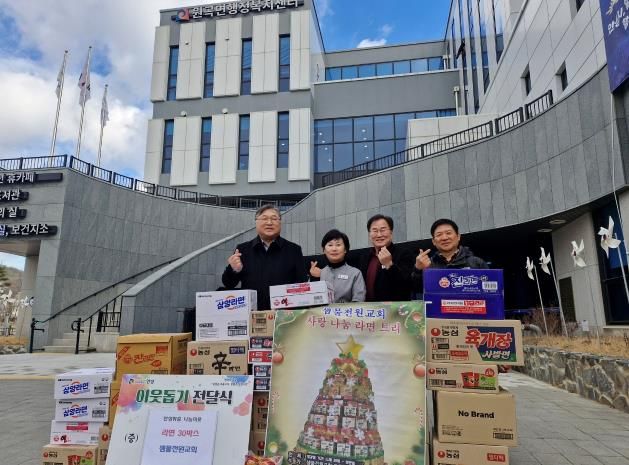 (비전21뉴스) 샘물전원교회는 지난 1월 9일 원곡면행정복지센터를 방문해 지역 내 어려운 이웃을 위해 써 달라며 라면 30박스를 기탁했다.