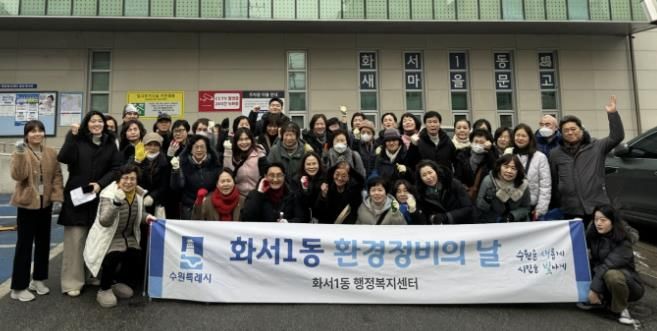 (비전21뉴스) 수원시 팔달구 화서1동은 지난 15일, 통장협의회 등 단체원 및 주민들과 함께 2026년 설맞이 관내 환경정비를 실시했다고 밝혔다.