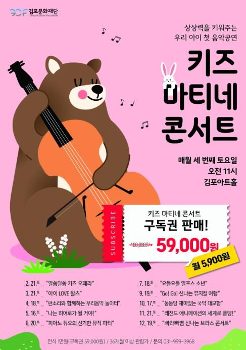 지난 2024년 시작된 '키즈 마티네 콘서트'는 유아동 관객에게 클래식부터 무용, 국악까지 폭 넓은 문화예술 경험을 제공하기 위해 기획된 공연으로 관내 학부모의 열띤 성원과 호응에 힘입어 김포아트홀 대표 유아동 브랜드 공연으로 자리 잡았다.