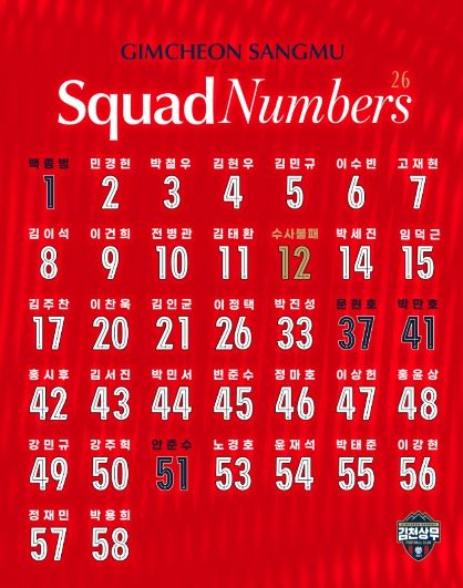 김천상무, 2026시즌 선수단 배번 공개!