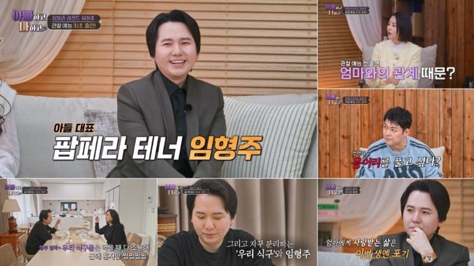 21일 방송되는 TV CHOSUN '아빠하고 나하고 시즌3'에서는 ‘세계적인 팝페라 테너’ 임형주와 세계적인 아티스트를 키워낸 ‘역대급 카리스마’의 임형주 어머니가 등장한다. 임형주의 어머니는 직접 아들의 무대를 진두지휘하며 의상, 조명, 음악 하나하나 세세하게 챙기며 소속사 대표이자 ‘여장부’ 엄마 면모를 선보인다. 임형주는 “저와 엄마의 관계가 특별하다. 저도 이제 불혹이고 어머니도 칠순을 바라보는데 그동안 보낸 시간보다 보낼 시간이 더 적겠다 싶어서 응어리를 풀어내고 싶다”라며 ‘아빠하고 나하고’를 찾은 이유를 밝혔다. 이어 그는 어머니에 대해 “제가 너무 사랑하고 한편으로는 미워하는 애증의 대상이다”라고 덧붙였다. 남다른 카리스마를 지닌 임형주 어머니에 전현무는 “우리 엄마 같다. 우리 엄마도 엄격하다”라고 공감하며 임형주 모자(母子)가 어떤 관계일지 궁금해했다.
