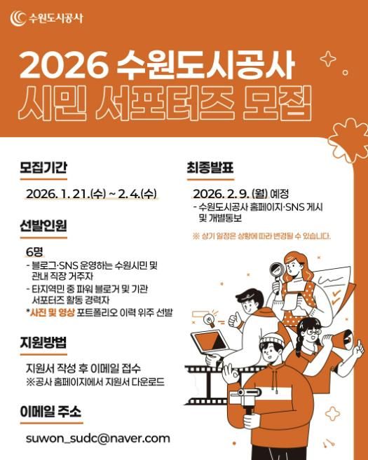 (비전21뉴스) 수원도시공사가 21일부터 다음 달 4일까지 2026년도 제8기 시민 서포터즈를 모집한다.