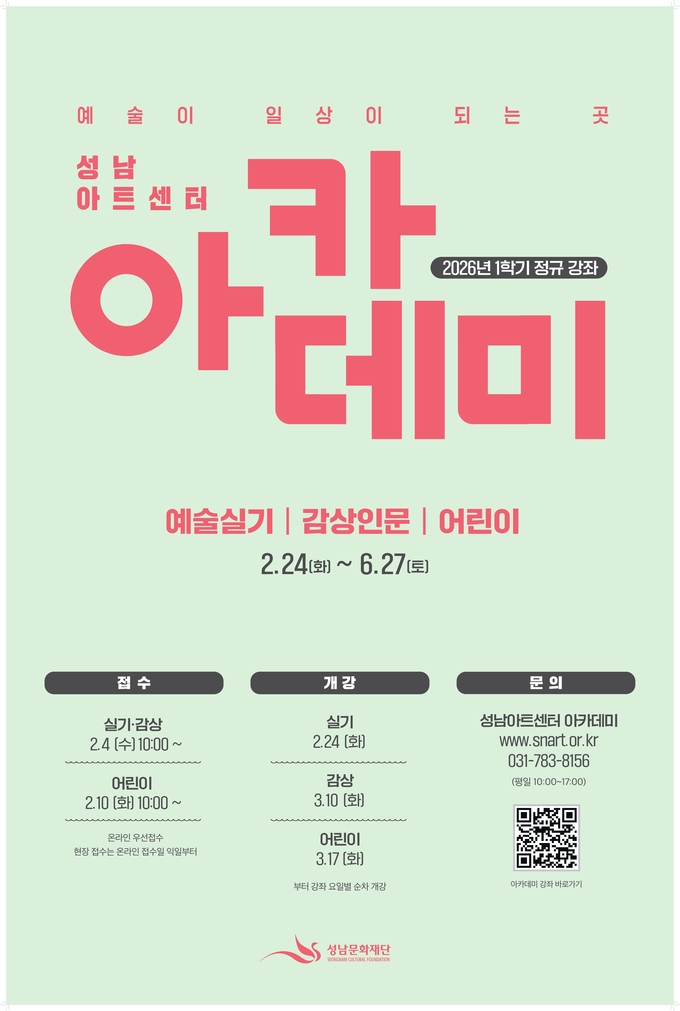 (비전21뉴스=정서영 기자) 성남아트센터(대표이사 윤정국) 아카데미가 시민들이 일상에서 예술 창작의 즐거움을 누릴 수 있는 2026년 1학기 정규 강좌를 선보인다.