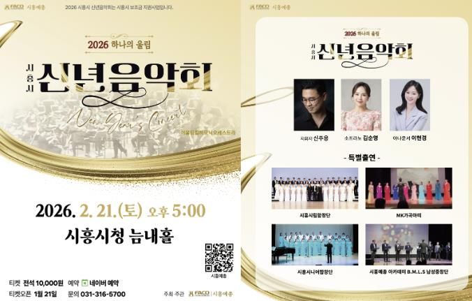 이번 신년음악회는 신주용 지휘자의 지휘 아래 어울림오케스트라의 웅장한 연주를 중심으로 소프라노 김순영과 탄탄한 음악성과 조직력을 갖춘 시흥시립합창단, 시흥시민으로 구성된 시민연합합창단이 함께 무대에 올라 음악을 통해 세대와 공동체를 잇는 ‘하나의 울림’을 선사한다.